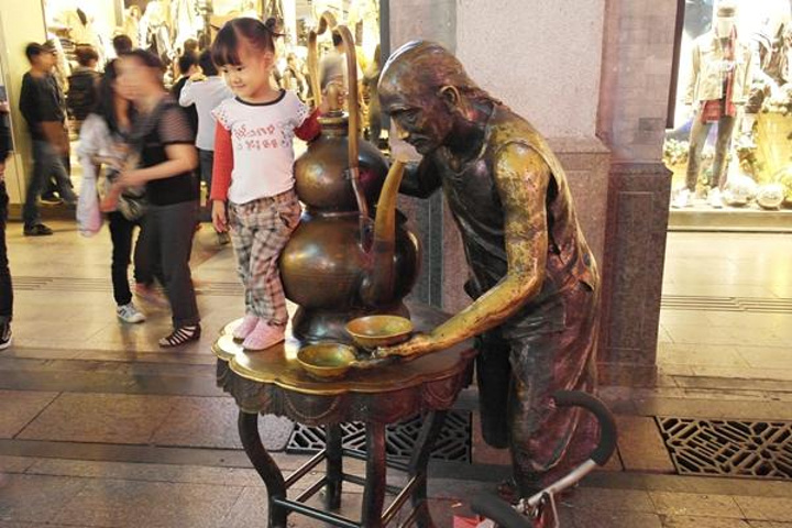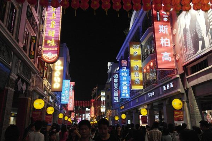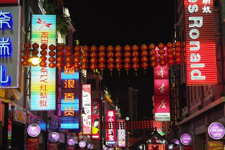 每个城市都有保留下来的传统商业街,广州荔湾区的上下九步行街就是广州传统三大商业街之一。之所以叫上下九步行街,是因为它所在的路段,有上九路,下九路,第十甫路等路段,这一块是岭南文化的展示地,既有岭南的建筑文化,也有民俗文化,还有饮食文化。我们到这里,是为了测试相机的夜景拍摄能力,所以就在十字路口,也是人流量最大的一段。广州的领队提醒我们把书包背在胸前,这样不容易被偷。上下九步行街让我想起了太原的柳巷,哈尔滨的中央大街,北京的王府井以及上海的南京路,真的是茶坊酒肆数不胜数。上下九步行街上既有百年老字号陶陶居,也有广州酒家。既有舶来品,也有本地产。夜幕降临的时候,这里简直就是饮食和购物的胜地,无论是小孩还是大人,个个脸上都洋溢着憧憬。在这里,你可以放慢脚步,品品早茶,吃吃小吃,逛逛商店。值得一提的是,这里的男女比例,一定是女的比男的多,不信你数一数。