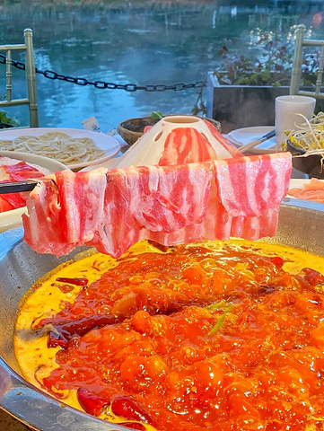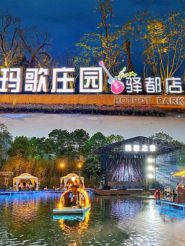 春日赏花🍃给大家找到一个好去处,在这里不仅不打挤,而且还能喝茶、打、吃火锅~ 那就是龙泉这家庄园火锅👏,延续了他家一如既往的庄园式景观,又依据龙泉风景有所创新~ 🍲店名: 玛歌庄园火锅(驿都店) 📍地址:驿都西路花田湿地内 进入庄园内向右便是超大的停车区🅿️和茶水区,在这里居高临下可以眺望下面的五彩油菜花田,还有热气球🎈,往下走就是就餐区,围湖而建,中间有音乐喷泉⛲️,还有个巨大的舞台~ 晚上六点半开始就有表演💃,跳舞、木船上唱歌🎤,八点还有空中飞人,节目一个比一个精彩,这简直太卷了! 👇推荐菜品: ✔️那么大耗儿鱼 真的就是极品耗儿鱼,很大只,刺少肉多无腥味,吃起来就太美味了,爱了! ✔️马蹄虾滑 黄瓜🥒打底,辣椒点缀,造型很乖的马蹄虾滑真的好看又好吃呀!Q弹的虾滑和清甜脆口的马蹄碎完美结合~ ✔️玉米饼 一份有十个,不油不腻就是玉米本身的香气,甜甜的香香的,还能吃到玉米颗粒,也太好吃了吧! 还有许多好吃的菜品,牛油锅底味道浓厚,加上赏花、看表演,这顿火锅真的太值了!