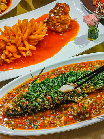 如果朋友来成都玩的话,蕞推荐这家了! 时间磨砺的才经得起考验! 味觉与视觉上,都要感受到绘画饮食的艺术~又是深入人心的家常味~ 每一份菜的口味的考究,摆盘的用心!团建聚餐都很可!氛围非常棒~ ————————推荐指南♡———————— 松鼠鲈鱼 我很喜爱的一道菜!端上来的时候,摆盘刀功都很精美~酱汁浓稠淋上,色泽油亮挂酱均匀,酸甜开胃!外部酥脆,炸的非常到位,内里鲜嫩~ 小炒黄牛肉 听说是他们家招牌菜,很多客人都很喜欢点! 怎么形容它的好吃呢?就是俩字!下饭! 甜椒是真的香!肉香四溢! 也不是湖南小炒肉那种辣到不行的,比较清香~ 香辣泥鳅 采用大火爆炒后再干煸!水份也收的刚好!上面铺满了一层花椒!口感爽脆香辣又麻苏苏!泥鳅肉质细嫩~ 麻辣鸡块 他们家凉拌辣油都特别香!拌出来的鸡块被红油浸透,裹满了香葱芝麻! 玉米粑粑 小时候玉米粑粑的味道! 口感松软蓬松!散发出来的淡淡甜刚刚好! 汽锅时蔬 用汽锅蒸出来的菜,保留了原汁原味! 下面铺的粉丝也特别下饭! 每一盘菜份量是真的多!特别是那盘蒜泥白肉,真的是肉堆肉!店家十分实诚~没有像别的店那样放些黄瓜丝垫着糊弄食客! 打包的时候,店里给了质量特别好的四周年的环保口袋~ 💛店名:赤宴(玉林店) 💛地址:兴蓉东巷12、14号