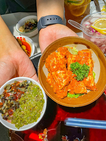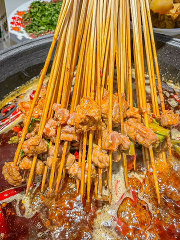 这家店真的治好了我们几个好饭友的选择困难症,不管是想吃火锅的,还是想吃串串的,这里都有,一锅全搞定。 还有油炸串串🍢、小吃冰饮🍧等,种类丰富。店里的环境也很复古,很有老成都的感觉。 —— 🏠海椒市串串香(茶店子店) 📍地址:金牛区茶店子南街2号(🚇地铁七号线茶店子站D2口步行330米) —— 串串推荐: 吃串串肯定少不了牛肉🥩,我最喜欢的香菜牛肉、嫩牛肉、折耳根牛肉、麻辣牛肉等,每次都会拿一大把。牛肉串串都是店里每天现切现穿,肉质新鲜,烫好之后入味又好吃😋。 另外还有各种味道的掌中宝,无骨耙鸡脚系列,口感脆香弹牙,麻辣入味。 ♨️火锅菜推荐: ⭕虎皮糯鸡爪 口感软糯,外皮吃着是酥香入口的感觉,除了烫好直接吃,还可以蘸点干辣椒面,更入味过瘾。 ⭕爆辣坨坨排骨 大块的辣排骨,腌制好就已经入味了,烫好之后直接吃,肉质香辣糯口,口感软滑不柴。 ⭕烧椒皮蛋丸子 口感Q弹又糯香的丸子,吃一次就喜欢这个味道,烧椒不辣口。 冰饮小吃: 吃火锅串串,来一杯冰柠茶真的是解辣解暑又冰爽。还可以加一份菠萝椰子炒冰,🍍菠萝的清甜混合??椰香味,凉fufu又爽口的感觉✌🏻。 个人感觉是好吃不贵,很接地气的老成都味道。店里的酒水也是平价,晚上吃宵夜也可以去,真的方便。