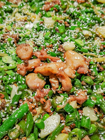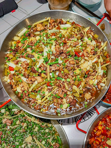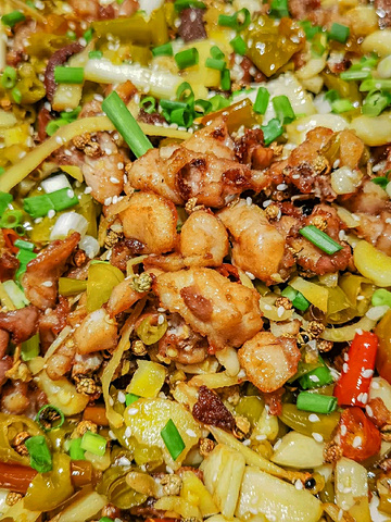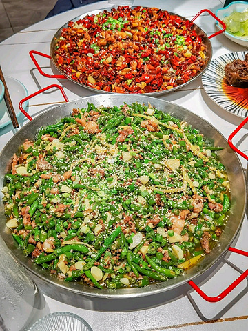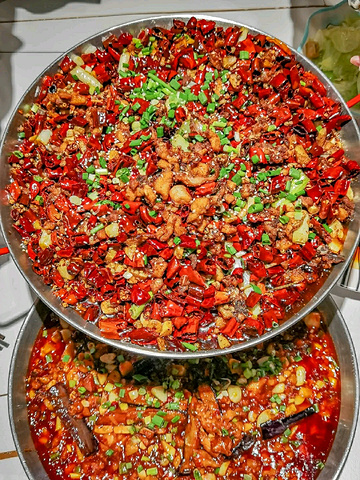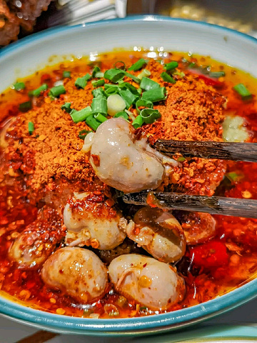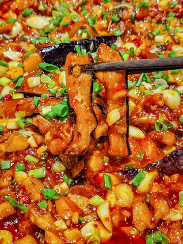 以前只知道干煸爆炒的辣子兔,这次来的这家江湖菜馆,总共有七种不同味道的兔子做法,真的大开眼界。 我们四人点了四种味道,加上四个滋味兔头,真的吃过瘾了😋。 ⭕辣子馋嘴兔 常见的干煸辣子兔做法,兔肉煸的很干香,肉质丝丝入味,干香的嚼劲很足,吃起来辣味不重。 ⭕老坛泡椒兔 很开胃的酸辣味,细姜丝和小泡椒闻着就很香。泡椒味道很下饭,兔肉是泡在汤汁里的,口感软嫩一些。 ⭕尖椒麻麻兔 青椒和花椒一起炒的兔肉,有很香的藤椒味。青椒也不辣,直接吃就很干香,兔肉口感软滑。 ⭕鱼香茄子兔 这个味道真的惊艳到我,舀一勺汤汁拌饭,再和兔肉一起吃😋香掉头。鱼香茄子汤汁裹着兔肉,酱香的味道太过瘾了。 ⭕滋味兔头 看着像麻辣兔头,吃着是浓浓的酱香味,辣味很轻,好吃到舔手。 店里还有其他几种味道的兔肉做法,我们已经约好下次再来尝尝了。