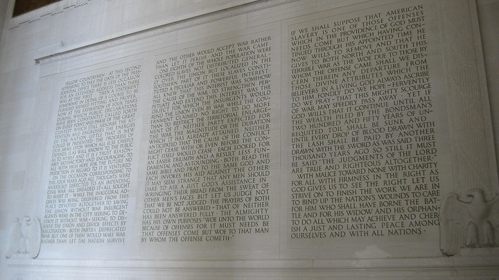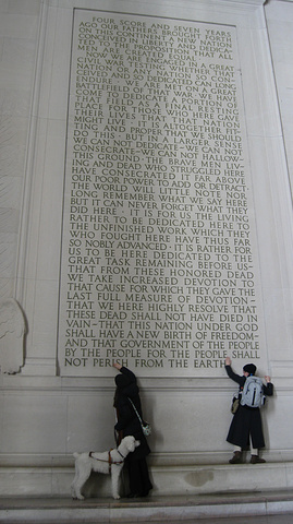林肯纪念堂是为纪念美国第十六届总统亚伯拉罕·林肯而建。林肯对黑奴解放作出了伟大的功勋,他在1865年4月14日被刺身亡。纪念堂于1914年破土动工,完成于1922年。位于华盛顿特区国家广场(National Mall)西侧,阿灵顿纪念大桥(Arlington Memorial Bridge)引道前,与国会和华盛顿纪念碑成一直线。纪念堂是免费的,大家都可以进去参观。在林肯纪念堂内,我为这样的背影驻足。一只导盲犬,两个盲人少女,她们来到墙壁前探身,拥抱着刻在墙壁上的文字。我不知她们从何而来,到何方去,也不知一路上她们遇到过怎样的坎坷,我只知道浮华的表象瞬息万变,只有内心的渴望才是前行的动力。用心看世界,这才是旅行的真谛吧?