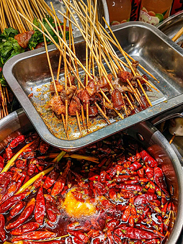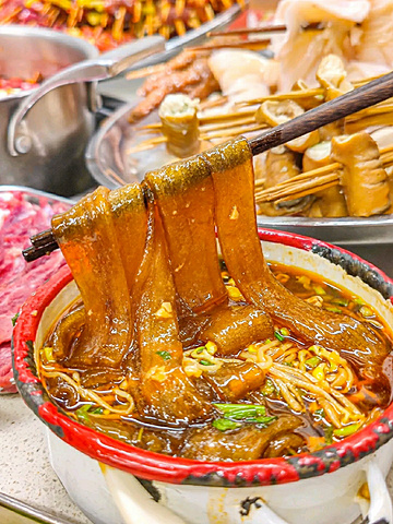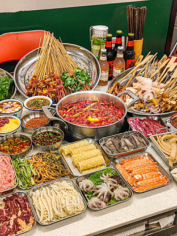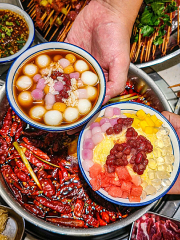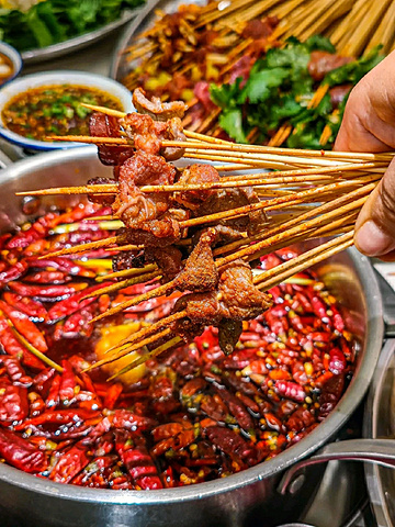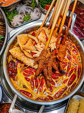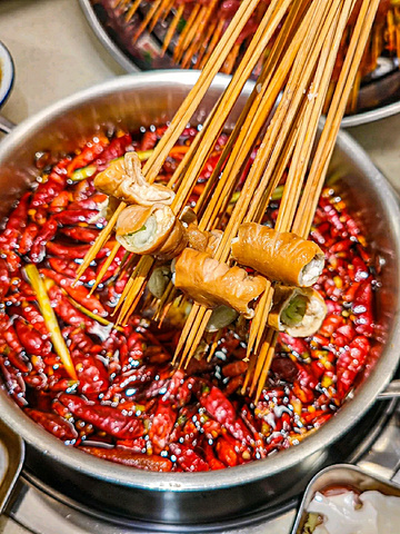 真的是顶着成都高温来吃~ 这家店巴掌般大的霸♡王鱿鱼! 浓浓市井味,宝藏串串店♡即使错峰也在排队! 如果不想错过美味,一定要带着你的小伙伴来打卡♡ ————————🌵环境🌵———————— 两层的错落有致的市井风设计,闪烁着复古的霓虹灯!一些小时候能看到的标志!环境明亮温馨! 在楼下坐着能看到楼上吃饭的人,空间叠层感觉满满~ ————————推荐指南♡———————— 霸♡王鱿鱼 手掌大的鱿鱼你吃过嘛 切好的发鱿鱼,每一片都很大一块 本身的品质就很好,肉质很厚嚼起来特别Q弹,越嚼越香,回味悠长,烫成卷卷开始享用! 虎皮鸡爪 鸡爪耙到柔弱无骨,一抿就化! 真是又香又耙,那个鸡脚虽然外形像虎皮,皱皱巴巴的,但是吃起来糯糯的浓浓的胶原蛋白~ 虎皮五花肉 肥瘦均匀长相貌美♡ 分层按照五花肉惯例~ 肉汁丰富,富有弹性! 香菜牛肉串串 当天现串!肉质新鲜!提前麻好料的,入口带着软嫩嚼劲!不同的牛肉口味都特别好吃! 乐山油炸串串系列 很地道的乐山串串口味!炸的香脆后撒上灵魂辣椒面!特别是五花肉炸了后,肥肉的部分太香了! 有的炸串会有过油、过咸或者炸过头的问题! 他们家的吃起来刚刚好,辣辣的很上头! 🏻甜品闪亮登场✨ 🍧杨枝甘露冰 芒果甜味恰到好处,清爽低负担~ 下面是绵密的沙冰,带着果味! 简直丰富了我的味蕾,口感层次~ 🍧抹茶红豆冰 抹茶泡冰加上红豆味! 有一丝淡甜,非常清爽解辣! 加上颜值很不错的一款甜品! 💛店名:王嘉龍的串串香(华宇广场店) 💛地址:静康路769号华宇广场一栋附131号