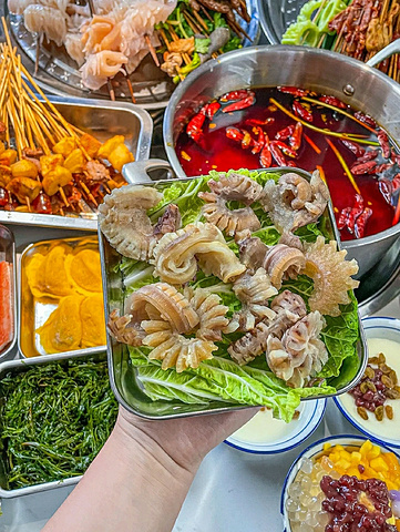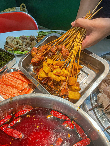 又被我发现一家成都龙头串串,霸王鱿鱼,超大的虎皮鸡爪 简直是很新奇,来成都必打卡这家! ▫️王嘉龍的串串香 静康路769号华宇广场一栋附131号 ✔️霸王鱿鱼 又大又脆又新鲜的鱿鱼 串成了串串,拳头大小 一口一个真的巨巨巨过瘾 完全停不下来,吃了还想吃 ✔️虎皮鸡爪 卤过的虎皮鸡爪就是很入味 糯唧唧的,一抿就脱骨 浸满了汤汁,外皮脆脆的 吃起来真的非常的香 ✔️乐山油炸串串 麻辣干香,很正宗的乐山味道 油炸的掌中宝,牛肉,五花肉 小香肠是必点的,沾点辣椒面 分分钟吃完了 ✔️杨枝甘露冰 高温吃串串当然要配冰 这家的杨枝甘露冰料很足 芋圆,芒果,沙冰很细腻 边吃边炫冰,很过瘾 可以说是近期吃过最爱的一家了 而且🈳️空调很足,完全不热哦 复古的设计风格,有一种串串工厂即视感?? 很值得去吃下特色