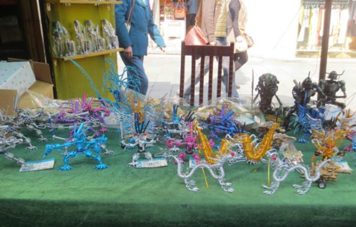 我最喜欢刚入街第一家卖光碟的摊子,都是原创的音乐很好听。这里有很多民间艺人,收工做的东西很多