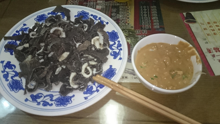 结果很多菜都没有了,结果每人点了一盘爆肚,沾着他们的酱味道还可以,不过量真心大,反正一个人吃不完一盘