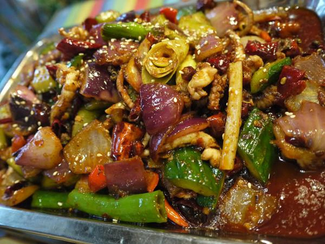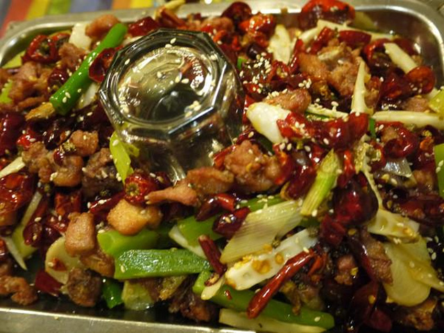 九眼桥的滋味烤鱼是朋友推荐的,点了招牌菜香辣黔鱼35一斤,啤酒兔55,飘香双脆48和培根薯条18,味道都无敌美味,满足了我们对重辣的需求,好吃好吃后来第二天又去吃了,点了江团58元一斤,牛肉上上签36,飘香鱿鱼须48。烤鱼店像咖啡厅也,餐厅wifi根本就连不上去。