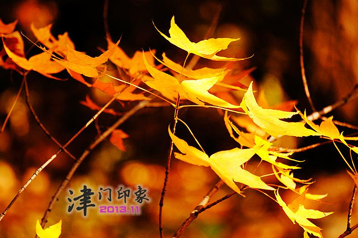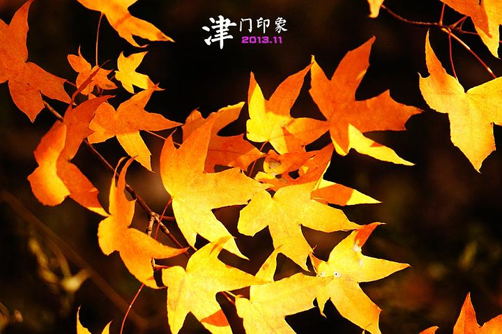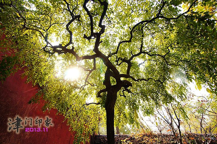 “天成寺”的红墙绿叶、百年银杏都深深震撼了我,任何颜色在这里似乎都耀眼到了极致,除了频频按动快门,我不知道还有什么方法能留住这绚烂的美景。边走边拍,山路边的红叶也在风中跳着欢快的舞蹈。 快步下山,终于提前一刻钟返回大门口。早上面包果腹,中午就在半山吃了一碗泡面,这会才觉得饿了,被山门口的柿子摊深深吸引。啊!这真是我有生以来吃到过的最大、最甜、最多汁的柿子,太好吃了,只要一元一个。吃完不够,我又买了四个,回宾馆后忍不住消灭了其中一个,还留了三个带回去给家人品尝。哎哟,现在写到这里都快要流口水了,赶紧觅食去~~~
