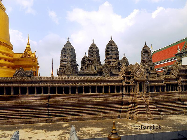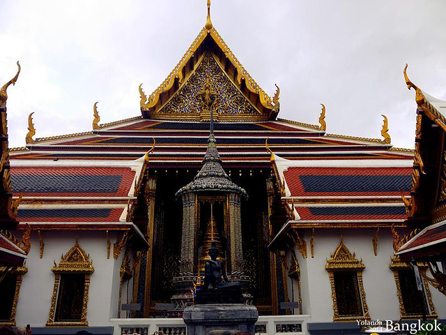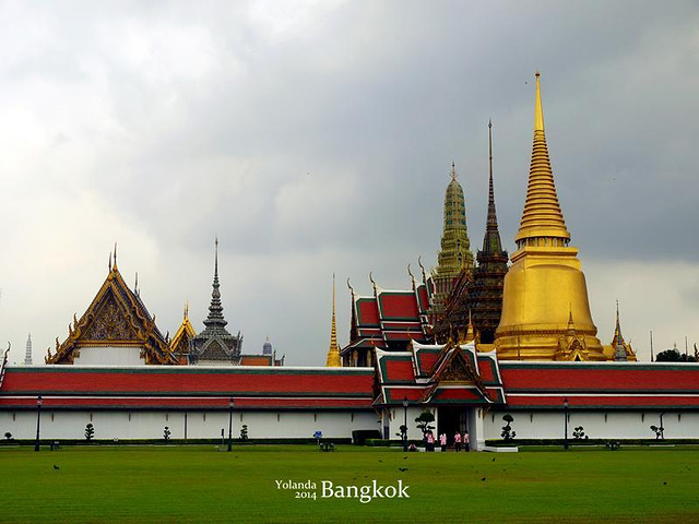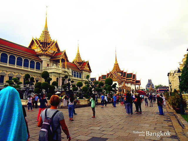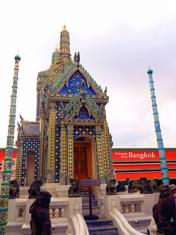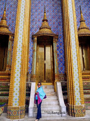 『来一张我妈妈的美图哈哈,大皇宫里面真的很适合拍照,特别是穿着艳丽的衣服,出来的效果很好。对了,那个蓝色的围纱是在长康街夜市买的,200泰铢。』