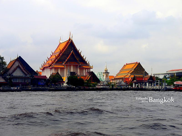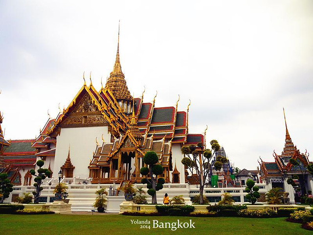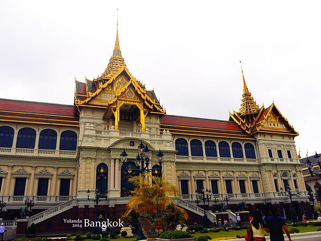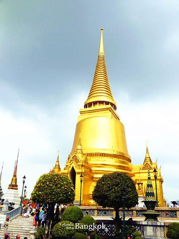 吃饱之后就开始了我们一天的行程。步行到BTS购买一日通(使用方式在前面已经详细说了,大家可以回到上面看~) 【TIPS】 『怎么去大皇宫?(水路)』 1.搭乘BTS到昨晚去Asiatique的站,这次要购买船票,40B单程,不能重复搭乘(也就是下船后需要重新买票才能上船)。 2.沿途会经过很多站,例如唐人街(N5站),考山路(N13站),郑王庙(N8站)。大皇宫在N9站,船上会有英文讲解(虽然那个英文有点不好听……),到站之后下船直行就可以了。 3.下船后会经过一片集市,这里的人超厉害,精通英语、中文、粤语等等多国语言,我们经过一个卖榴莲的店铺,老板娘突然用粤语说“好好食噶”,把我们吓了一跳。 4.走过集市之后就能看到大皇宫了。 【注意!!!】 就像很多攻略里面说的,路边会有很多人过来跟你说今天大皇宫不开,然后要带你去其他地方看啊去看宝石啊什么的,遇到这些人前往不要相信,都是骗人的。 『曼谷大皇宫』 大皇宫(The Grand Palace)紧邻湄南河,是曼谷中心内一处大规模古建筑群(计28座),总面积二十一万八千四百平方米。大皇宫是仿照故都大城的旧皇宫建造的,经历代君王不断扩建,终于建成现在这座规模宏大的大皇宫建筑群。大皇宫是泰国诸多王宫之一,是历代王宫保存最完美、规模最大、最有民族特色的王宫。曼谷王朝从拉玛一世到拉玛八世,均居于大皇宫内。1946年拉玛八世在宫中被刺之后,拉玛九世便搬至大皇宫东面新建的集拉达宫居住。现在,大皇宫除了用于举行加冕典礼、宫廷庆祝等仪式和活动外,平时对外开放,成为泰国著名的游览场所。 买好门票后一直走就是入口,在入口会有工作人员派发免费的多语种地图和讲解,很好笑的是我走过的时候工作人员给了我一份韩语的,我马上跟他说“Chinese”,他看了看我就给换了。这里的工作人员也是会多国语言的,很厉害。 到了大皇宫才知道什么是气势恢宏,这里的建筑都金碧辉煌,而且极具泰国特色(这不是废话吗这里就是泰国最有特色的地方。。)。有的人可能会犹豫500泰铢的门票太贵要不然在外面看看就算了,但是我可以告诉你,这500泰铢绝对值得,因为进来看看真的会被震撼到的,特别是玉佛寺,里面全都是金色的,还有很多信徒会坐在地上念经祈福,很神圣的感觉。