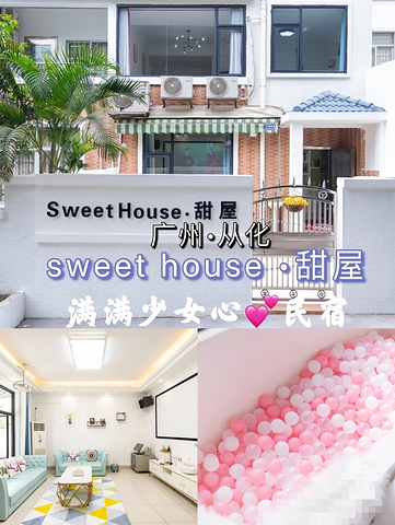 🔥从化网红打卡民宿💕Sweet house .甜屋💞 sweet house .甜屋民宿,💕 满满的少女心💟民宿风格就如名字般清新甜美💖 特别适台家庭亲子游、同学闺蜜解游、公司小团队、生日轰趴等。 📍民宿位于环境优美的广州从化生态设计小镇内 💞关于民宿配置 甜屋配有投影仪、 KTV 、液晶电视 📺,🀄️、空调、卫生间、全套洗漱用品;同时容纳14人娱乐哦~ ▶️关于民宿房型 4房7床 一楼 房间一:一张1.5米床 房间二:两张1.5米床 二楼 房间三:一张1.8米床 房间四:三张1.5米床 🐷关于美食 民宿配有简约小厨房,麻雀虽小但五脏俱全,锅碗瓢盆都有,还配备了西餐碟和刀叉哦,😘自备食材过来。 ▶️民宿准备了甜心烧烤套餐,不想动手串食材的,可以预订民宿时咨询详情哦。 🉑提前预订烤全羊包套餐,有专业的师傅上门为你现场烤制,色香味俱全,好评满满哦 😋关于生态设计小镇 生态设计小镇位于广州市从化区良口镇,环境优美,有大大的草地,是一个野餐、亲子活动和拍照司打卡的宝藏胜地哦困,生态设计小镇鸭洞河,也是一个网红的打卡点哦 重点来了,甜屋民宿距离生态设计小镇步行只需要10分钟哦~ 喜欢的记得给我小心心