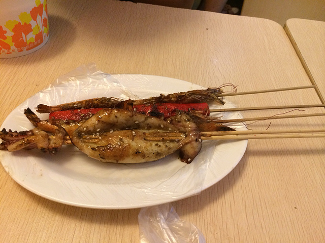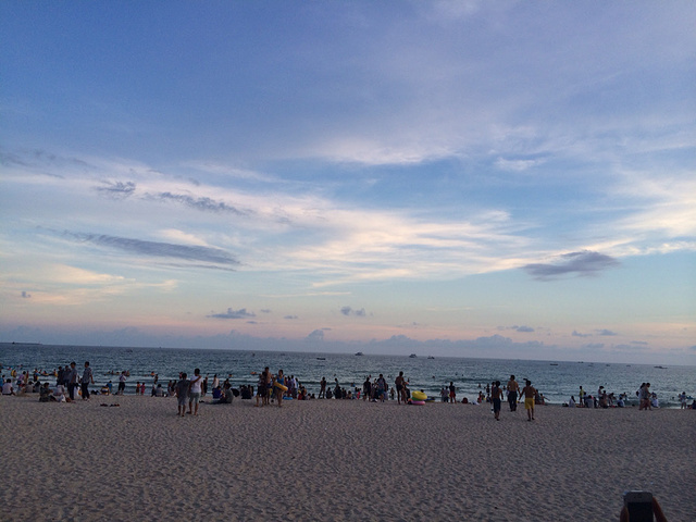 早上坐二十八路去蜈支洲,中间坐了船,第一次坐船,蜈支洲挺一般的,没有玩项目,觉得太贵也没意思,晚上去了大东海,水挺脏的,不过没有太阳,凉爽,这段时间被晒成脱皮的螃蟹了,晚上吃了烧烤,四十八块,便宜,好吃,住的周围四川重庆的饭馆太多