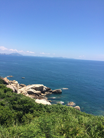观海长廊,风景很好,人照出来好黑。船上风景不错,风吹过来很爽,不过有些晒。坑爹的美人鱼雕像,这么小