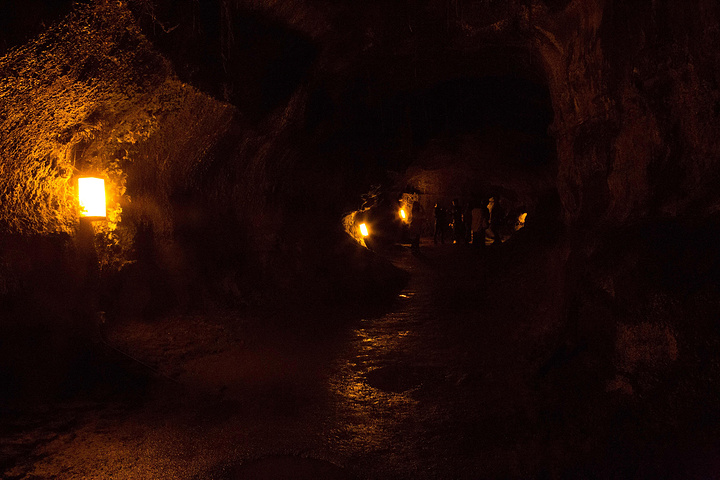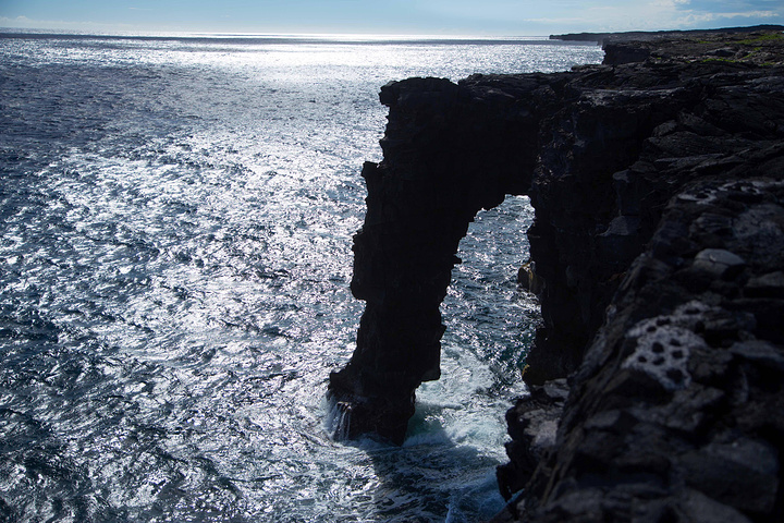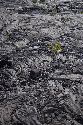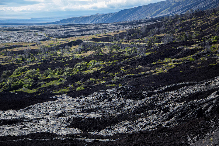 火山国家公园(Volcano National Park)是大岛最重要的一个游玩项目之一,国家公园中有依然活跃的火山,几个观景点可以看喷发后的火山坑、从地下冒出的蒸汽,可以徒步在火山溶洞之中,也可以脚踏纯黑的熔岩,更可以在Jagger Museum看到从地下冒出的熔浆红光。进入国家公园的第一站当然是游客中心,在Kilauea Visitor Center咨询游玩路线和信息。游客中心看到可爱的绿海龟玩偶,这是附近海域经常出现的野生动物之一,据说如果长途徒步到国家公园海边的沙滩上,有很大的几率看到绿海龟呢。由于到公园的时间比较晚,Chain of Craters Road是公园必须游玩的观景道路,单程38英里(62千米)开下来需要一个小时,再加上路上的观景点停留,往返至少要三个小时时间。从游客中心出发不远就是Turston Lava Tube(Nahuku),这个火山熔岩通道有500年的历史,在火山爆发时,在熔浆迅速冷却时行程的中空隧道。在600米短短的徒步过程中,可以看到葱翠茂密的热带雨林景象,然后就是潮湿的溶洞。景色美丽,有特色。Devastation Trail(毁灭小径)单程800米的短程徒步路线,徒步路线上都是柏油路,一路都可以看到由1959年Kilauea Iki熔浆形成的熔岩。Mauna Ulu Trailhead,有一条短程徒步路线,其实下车就能看到黑色有纹路的熔岩,不需要徒步就能站在漆黑的岩石上。这里温度变高,站在漆黑的石头上格外的热,估计是因为阳光照射的结果,你也可以想象成地热熔浆造成的,这样是不是更惊险刺激呢?