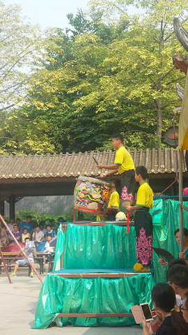 表演结束就到外面..谁知道又有另外一场表演的说真悲剧第二次堵死死...天啊~!!不过听说这个是国庆预备节目..平时都没有的说...好吧...挤个好位置..看一会儿吧...这个是我们广州人所说的"醒狮"