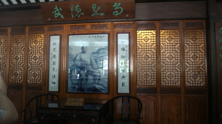 这个也是展览馆哦..应该是黄飞鸿师傅肖像...说错了别怪我...中间有摆放着酸枝桌椅..想必是以前黄师傅坐过的吧...有围栏...大家别想坐上去拍照or others...