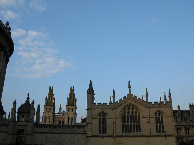 牛津是一座位于泰晤士河上游的城市,与剑桥大学一样,是座大学城。只是牛津大学没有校门和围墙,城市与大学融为一体,街道就从校园穿插而过。 “牛津”来历意为“牛可涉水而过之地”。据说当时这里的河水很浅,用牛拉车即可通过,牛津因此得名。 牛津也培育了很多各国知名人士,如美国前任总统克林顿即是。还有哈雷慧星发现者哈雷教授,著名诗人作家雪莱、中东政治史名人阿拉伯的劳伦斯,还有我喜欢的戏剧大师“憨豆先生”和《爱丽丝奇遇记》在作者刘易斯.卡罗尔等等。大学基督教会学院【Christ ChurchCollege】是牛津大学最大的学院,是HarryPotter的霍格沃兹学校和饭堂的拍摄地。它是世界上唯一一所教堂式学院,这间教堂的建造花了800多年。这间学院最引以为傲的是在200年内产生了16位英国首相,在这所教堂学院的走道的地板上都是对这座教堂建成有贡献的人的名字,里面还有木乃伊,在中世纪,牛津大学的学风可谓恶劣无比,多次与当地居民发生冲突,并且发生流血死亡事件,其中最大的一次冲突,几百名学生被愤怒的市民乱箭射死,这件事的结果是国王出面镇压,并判市民赔偿牛津大学500年费用,当然牛津也是座世界学术和思想最活跃的大学。