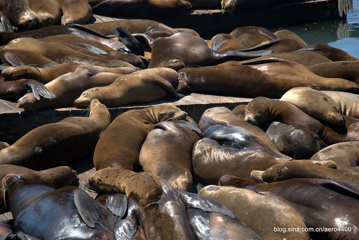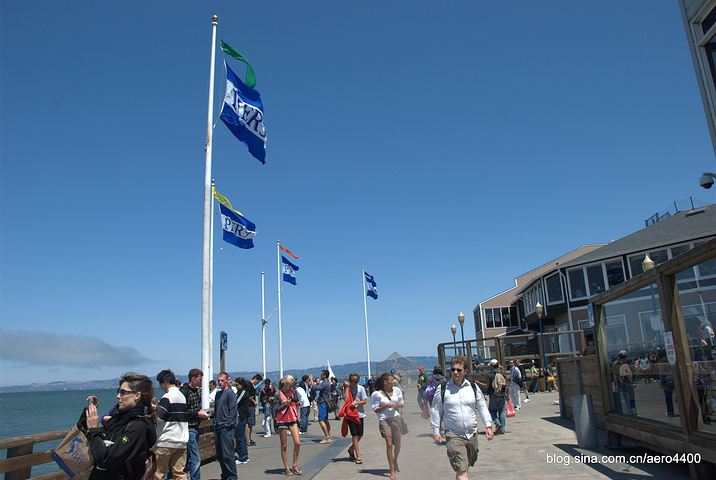 Pier 39是旧金山市中心有名的码头,他位于旧金山渔人码头边上,走路十几分钟就能到达。这里因为成群的海狮吸引无数游人驻足观看。还是憨态可掬活泼可爱,大部分都在甲板上懒散的晒太阳,而年纪稍轻的海狮则总在水中嬉戏,时不时爬上甲板打扰成年海狮的清静。游人无法走到甲板上近距离接触海狮,只能在观景区域观看,很多游人都会驻足很久,所以这里通常会聚集很多游人。码头边有不少船只停靠,晴朗的天空倒影映在水面十分漂亮。码头边还有不少精品店,里面可以购买一些与渔人码头和39号码头相关的明信片或冰箱贴。有时,码头附近还有农贸市场(farmer's market),桃子、草莓都非常诱人,虽然价格不便宜,但看着就好吃。我们买了些巨大的樱桃,这是我吃过的最好吃最大的樱桃了。