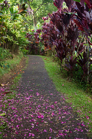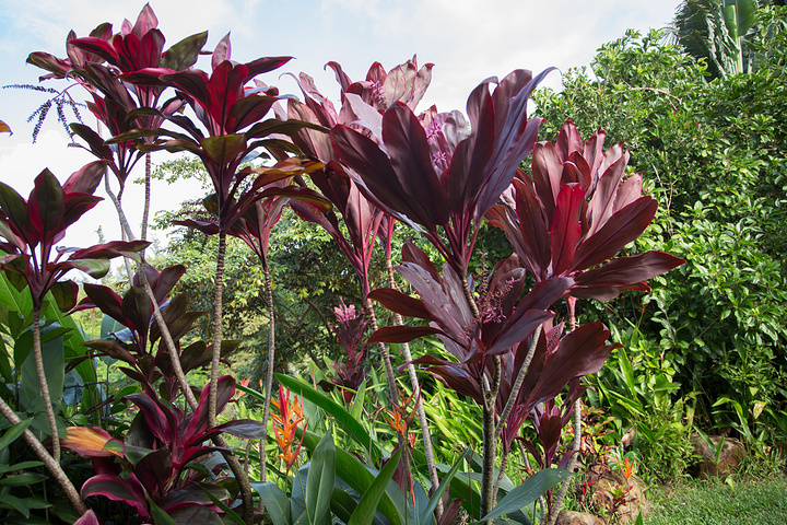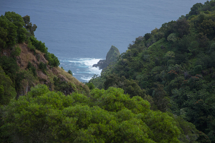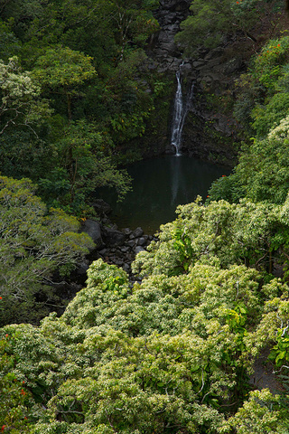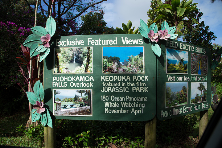 Garden of Eden Arboretum(伊顿花园),据说是拍侏罗纪公园的场景之一。地址:10600 Hana Highway Haiku, HI 96708;电话:(808) 572-9899 ;网址:mauigardenofeden.com;营业时间:8am - 3pm;门票每人15美金,只收现金。这里有各式各样的孔雀和鸭子,可以花一个硬币,买些他们爱吃的食物,他们就会跟着你到处跑,围着你不放。这里有很多从没见过的热带植物,葱郁的绿色,鲜艳的花朵,翠绿的树林。Keopuka Rock overlook海中的那块岩石就是侏罗纪公园的拍摄场景了。Valley Overlook、Waterfall Overlook和Rainbow Overlook风景都比较一般,可能因为当时天气比较阴。这个花园游人不多,在寂静的羊肠小道漫步,大自然的天然氧吧让人放松,时不时碰到只孔雀鸭子之类的,给人惊喜。