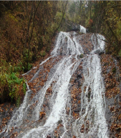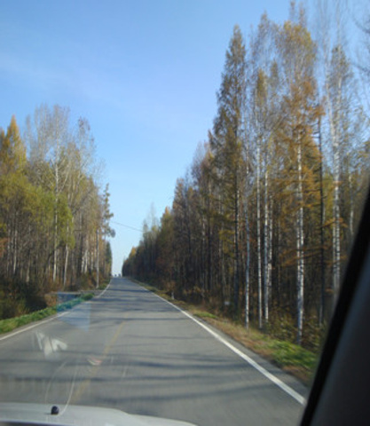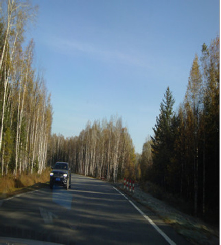 路边美丽的白桦林。这是美丽的小桥流水。更美的白桦林。还是白桦林。看,这片石柱是不是更加雄伟壮观