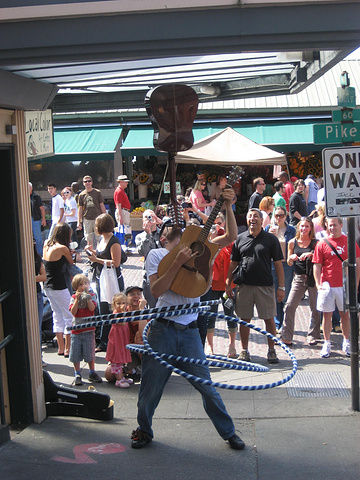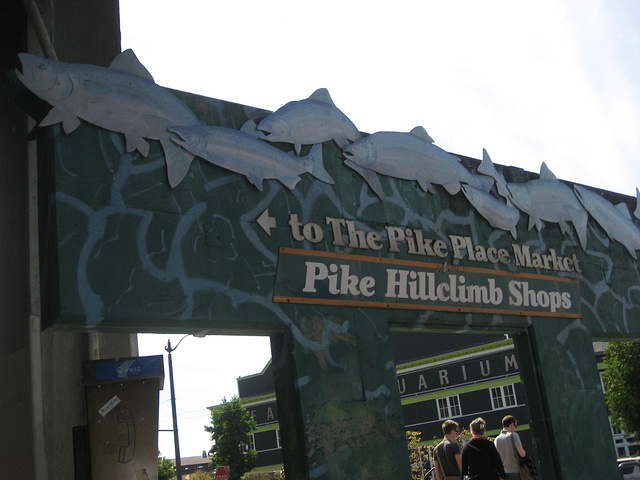Pike Place Market派克农贸市场依然处于西雅图市中心,是一个非常大的农贸市场。这个市场建于1907年,成为西雅图比较具有历史代表性的农夫市场,也受到游人们的青睐。市场里面有卖水果蔬菜的,有卖海鲜活鱼的,品种多样;也有街头艺人卖唱表演的,有咖啡厅餐馆供游人休息的,热闹非凡。其中大型的鱼市Pike Place Fish stall不仅每天吸引游客前来观看卖鱼和加工过程,当地居民也会因为这里的价格合理专门到市场来购买新鲜的鱼类。三十岁的铜猪“Rachel”是派克市场的标志性建筑之一,游人可以骑到它身上拍照。 广场面积不小,走累了或饿了可以选择一家人气餐厅吃上一顿地道的美国菜,也可以在各个水果摊上买些新鲜的水果补充维生素。派克市场内的街头艺人很多,每人展示的才艺也有所不同,可以根据个人喜好观看。