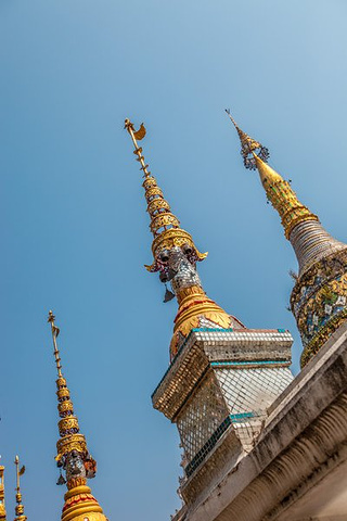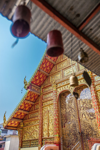白塔风铃——【Wat Saen Fang 圣方寺】 圣方寺去的游客不多,入口也相当不起眼,仅仅是一扇小铁门。 圣方寺大殿后方伫立着高高的白塔,白色塔身,金色塔尖,铜铃金伞随风摆动,发出清脆美妙的声音。周遭游客稀少,只待你一人静静欣赏。