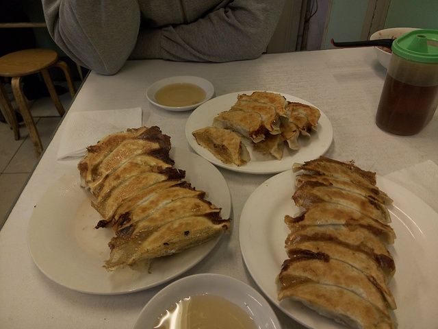 崂山下来之后在海滩上发了一个小时呆,就赶回市区了。 中午没有正经吃饭有点饿,路过传说中的锅贴店三鲜锅贴,要了鱿鱼锅贴、三鲜锅贴、大虾锅贴。