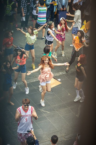我们逛着逛着,楼下一阵骚动,原来是快闪
