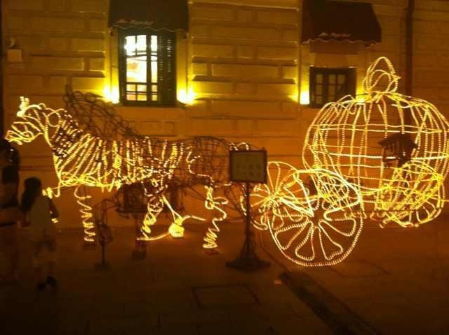 广场上的南瓜马车,过来的时候有个很漂亮的外国小男孩在这里拍照!美死了~~不过有一只小马的灯光不亮了,有点不完美啊。