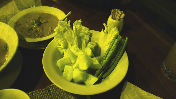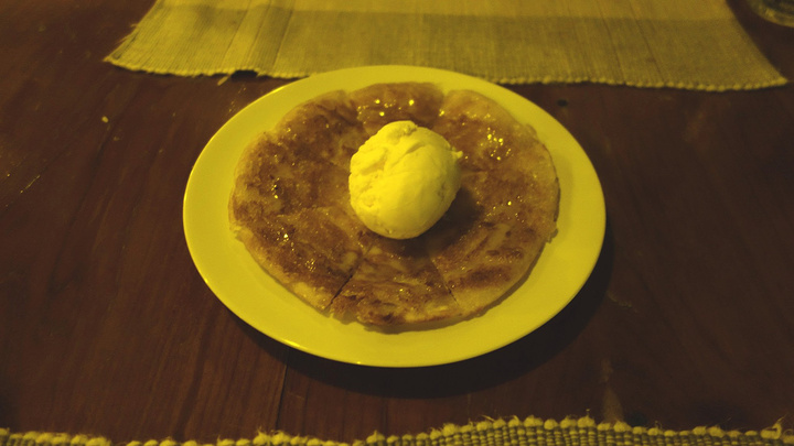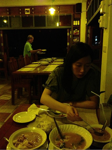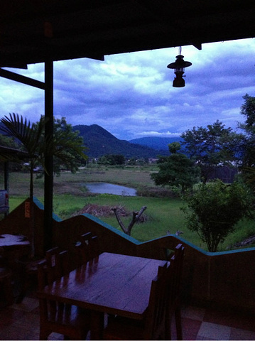 在泰北小镇的郊外,店里就一个年迈的老服务员,事无巨细,态度和蔼, 食物美味,最后那道飞饼冰淇淋巨赞。吃完和老人小聊了会,他母亲是中国人, 但到他这一代,已不会中文。。。。