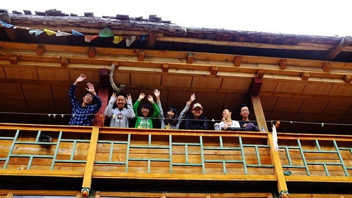 到梅里怎能不去雨崩。 在徒步者中,这个至今没有通公路,只能靠双脚或四脚(骑马)到达的村子,永远高居必去的地方前十。 虽然雨崩已经开始商业,但去的人相对较少,尚不影响其原始的风貌和绝美的风景。 传说,雨崩在很久以前并不被外界所知,后来,梅里雪山后有一个老人常到澜沧江边的西当村借粮,西当村的人谁也不知道老人从哪来,便有人跟踪他,可总是走着走着就不见了。后来有人想出一个办法,当老人再来借粮时,西当村人说:“这次不借给你青稞,也不借麦子,借给你小米。”他们在帮老人将口袋扛上肩时,乘机在口袋上扎了一个洞。小米一路流着,村民们紧跟着找到一块巨石下,小米没有了。他们奇怪极了,众人掀开巨石,却发现下面有个村子,雨崩这才被外界发现。——百度百科 不管怎么说,这个藏在神山脚下的村子,充满了各种神秘色彩,也让无数人心生向往。 写下徒步相关的攻略吧: 从飞来寺可包面包车至徒步的起点——西当温泉(不是西当村)。 前一晚日落时,或第二天一早日出的时候,会有大量的面的在飞来寺拉客去西当。一般30元左右/人,一小时左右可到西当温泉(不是西当村,温泉在西当村继续往上一段距离的地方)。 进入雨崩一般有两条路可走,一是常规的西当进,另一个是从尼农进入。从西当进的好处是翻过南宗拉垭口后,一路都是下山路,且西当温泉有马夫,可提供骑马服务。而且西当是传统的徒步雨崩线路,沿途走1、2小时就能见到小卖部,无需担心补给的问题。但西当进入,逃票几乎是不可能的。 从尼农进入的话,有逃票的可能(仅是可能,因为进入雨崩村还是要查票的)。但沿途只有一个小卖部,全程约20KM上坡,且岔路较多,没有一定户外经验,或没有向导带路的情况下较易迷路。 从西当温泉到南宗拉垭口,一路爬升1100m,约12km,3、4小时即可到达垭口。然后就是5km的下山路,海拔下降500m,1小时左右即可到达雨崩上村。一路因为是马帮带人带货进入雨崩的必经之路,路况较好,除了少数地段较陡外,都没有任何危险。 从雨崩上村到冰湖,来回约8小时,24km(往返),海拔爬升800m。看到冰湖后,从山上下到冰湖边的最后一段路较陡峭,其余路段也都非常好走。 从雨崩上村到下村约1km,半小时可到。 从雨崩下村到神瀑,来回约4小时,10km(往返),海拔爬升500m。一路路况很好,就一条主路,想迷路都难。 从雨崩下村到尼农,约4小时,20km,全程下坡,部分路段岔路极多,一不小心就会迷路。同时在雨崩下村往尼农的路上,景区有告示说明:尼农峡谷不属于雨崩景区,部分道路容易塌方(我们就遇到了),请游客不要进入,自行进入尼农,景区不负责任之类的。但尼农峡谷的风景比从西当进入要好很多。 从雨崩下村到神湖,40km(往返),海拔爬升1500m。到雨崩后得知,神湖极远,且道路积雪难行,没有向导的情况下,几乎不可能一天往返,最终放弃了神湖计划。同行的朋友请了向导去了,来回近12小时。从照片看,实在不值得花12个小时去。 需要注意的是,上村住宿条件较好,24小时有点,天好的时候可以洗澡(因为用太阳能热水器)。下村相对住宿较差,定时供电,一般天黑后3、4个小时,同样天好的时候可以洗澡。 我们最后选择的行程是:西当温泉——雨崩上村(住宿)——冰湖——雨崩上村(住宿)——雨崩下村——神瀑——雨崩下村(住宿)——尼农。 原计划4天的行程,最终走了7天,原因是:懒~~~-_-b。 老人家我更喜欢晒太阳喝啤酒,没办法,哈哈。 雨崩实在是个适合发呆的地方(貌似每个地方都适合我发呆)。 我们住的客栈老板也是一朵奇葩。某日有人来询问住宿,老板回答:没房了。客栈明明只住了我们八个人,问其原因:“今天不想做生意” ……………… 好吧。 于是出现如下一幕。八个人,四男四女在客栈二楼的阳台上一字排开…… 见有人路过便摆出花枝招展状,挥舞着晒着的内裤、袜子等…… “客官,要住宿嘛?我们这里便宜啦……” “客官,要住宿嘛?这里有姑娘啦……” “客官……” 本来走了一天,已经走不动的客官已经跑的比马还快了……