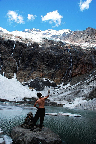 冰湖不大,却足以让人震撼。在此不脱一下,感觉对不起这风景。但尼农峡谷的风景比从西当进入要好很多