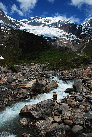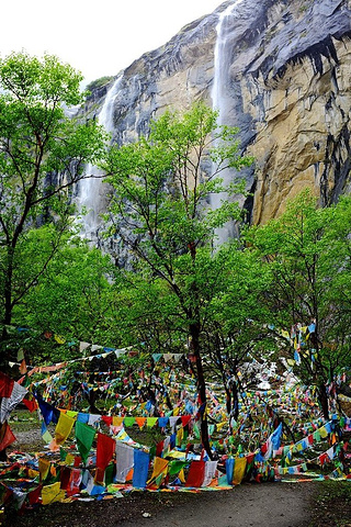 神瀑,藏民们相信,在神瀑下转三圈,淋得湿透,可以得到神灵的保佑。尝试了下,在神瀑下转了两圈,被冰水淋的浑身打颤,实在没勇气转第三圈了。