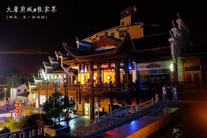 大庸府城晚上人不多,里面有一些pub,估计热闹的时间还没到。