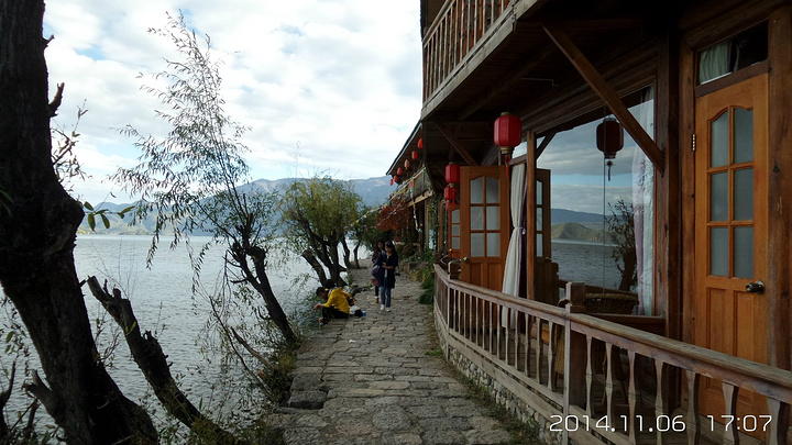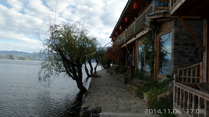 本是一个荒芜人烟的小岛,被几个有眼光的生意人租下,现在听说即使是在淡季,上面的房间也要提早很多天才能预订到。 相比“大落水”,小落水村很小,同附近的尼赛村一样,不过这里的环境也是十分的清幽,与宁静的泸沽湖相得益彰,如果想感受更加纯净的泸沽湖风情,可以住在小落水。 尼赛村再外面一点是里格村和大落水村。大嘴村再外面一点是前往草海和赵家湾的方向。无论是对云南还是四川,小落水村都是最深处最容易被遗忘的那个,不为人知的是这里有格姆女神山最邻近的庇护,有泸沽母亲最直接的怀抱。小落水村的民居离湖边较远,步行约有十分钟的路程。这里的泸沽湖呈弧形,湖畔长满芦苇,坐在去大落水的猪槽船上从芦苇间划去,很有诗意。