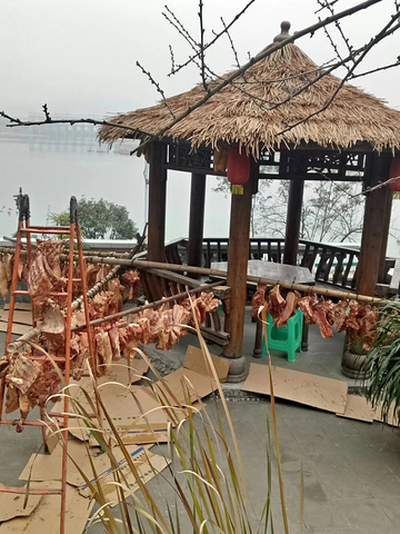 很巴适的地方,小情调,小景,农家腊肉,被柳树环抱的农家⼩院更使⼈如醉如痴。⼣阳余晕透过层层枝叶撒在这红砖青⽡的房舍上,给它抹上⼀层黄灿灿的颜⾊,烟囱冒出缕缕炊烟。依山傍水,那叫一个巴适呢。