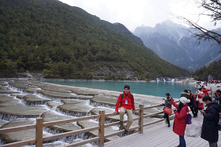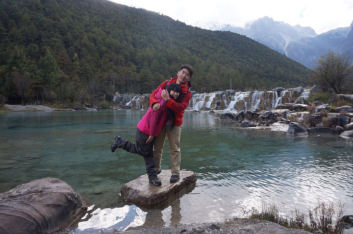 从雪山下来,还这是有些头晕脑胀呢!接着就乘坐电瓶车(60元,有胖金妹或者金花姑娘解说)游览雪山冰雪融化而成的娟娟白水河和静躺在上古树林怀抱中的幽幽蓝月谷。