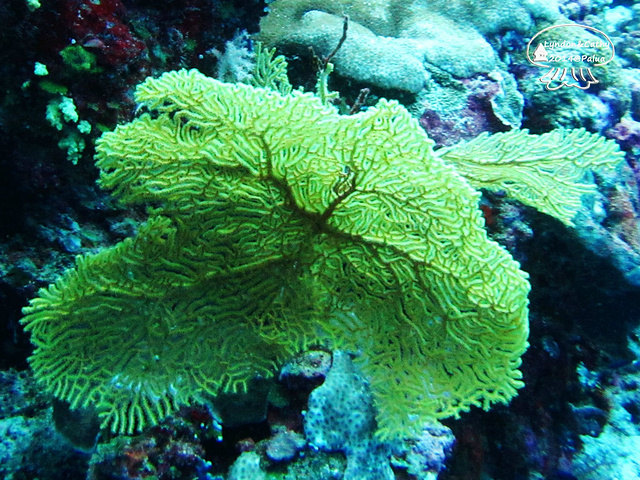 又一簇柳叶珊瑚,珊瑚叶覆盖着白色的绒毛水螅体。