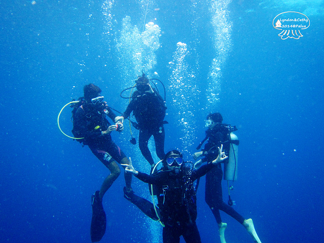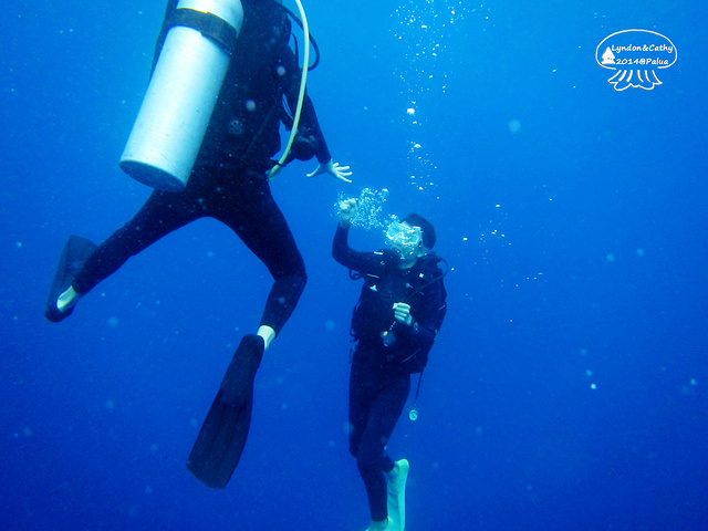 剪刀,剪刀。 终于完成了蓝洞蓝角的深潜实践,更确切地说,已经是潜水活动了。非常庆幸能够在帕劳的最后行程见到如此不一样的海底世界,如果奇妙的体验和感觉。OW,把我们的海洋梦想拉进了一大步,蓝洞蓝角,是我们帕劳之行的点睛之笔,为我们帕劳之行锦上添花,这已经足够我们回味一生。当然,帕劳的深潜之旅不是终点,而是起点,更多的海洋世界,我们将继续探索。