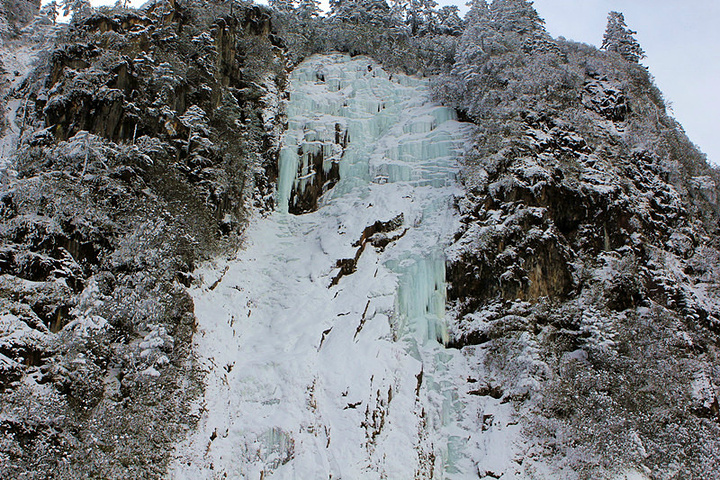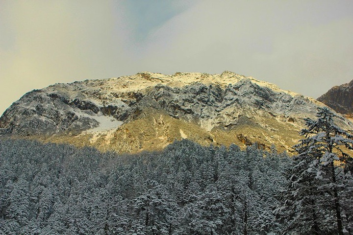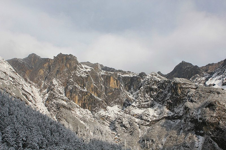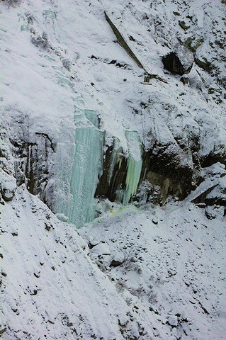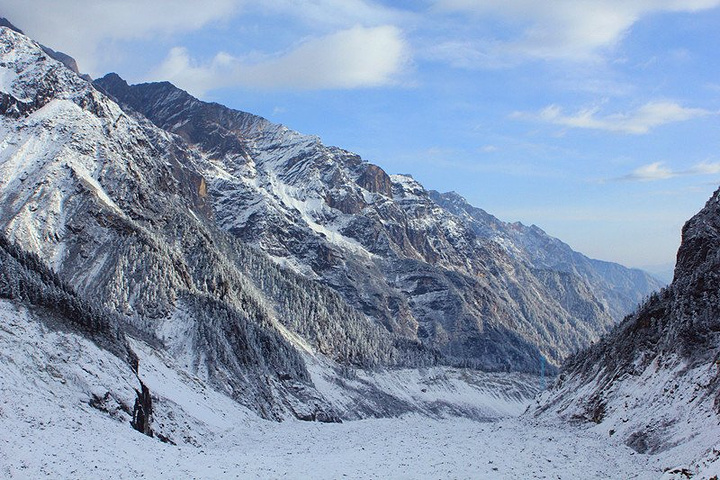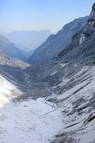 一路美景,远处的就是金山。没错,就是这个样子,大冰瀑在眼前转了个弯,就到了下面的山谷去了