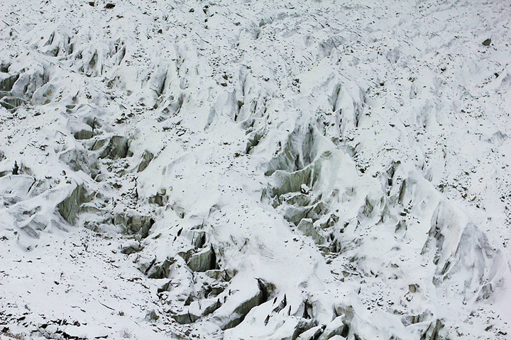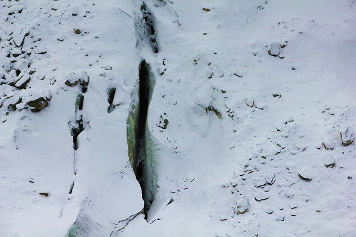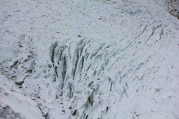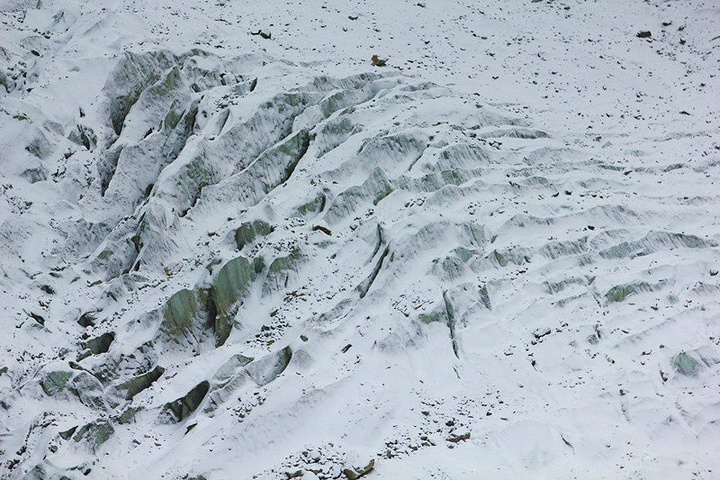 从上面看冰裂缝,有在网上看到神人从三号走到四号营地 那是在玩命! 看看这些裂缝,如果你滑下去了,裂缝下还有暗流,带着那些冲刷下来的冰,可以瞬间切断你的腿 所以还是不要那么冲动