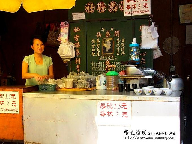 看着一碗一碗的凉茶,有没有点汤药的意思。 如果你有牙痛、嗓子干,有上火的迹象,来一碗刘乐仙凉茶,据说很有效果呢。