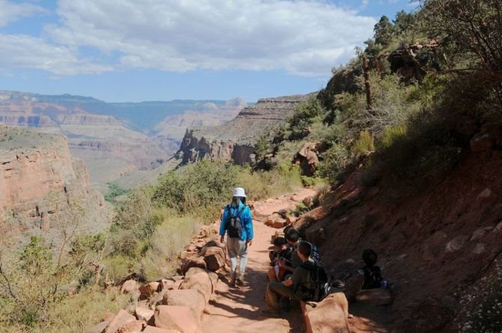 这一天,我们从峡谷上面徒步到下面的Indian Garden,下山3小时,上山4小时,从没走过这么多的路,看到各国的人都在徒步,有点背上背着小婴儿也在走,窄路上每当大家迎面而来都会问候 和 微笑,非常温暖,充满力量,是大自然给予的,如此平静和美好。
