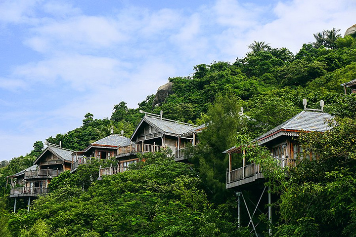 从三亚市区到分界洲岛码头只要一个多小时。码头到岛上只要十分钟左右航程,轮渡的班次很多,工作人员很热情。 现在三亚很多小岛都常年人山人海,水质也大不如前。于是这次选了一个开发还不算久的岛屿——分界洲岛。 我们预订岛上的酒店套餐包含门票和往返三亚的车票,到了分界洲岛后到游客中心凭身份证登记,付了押金,工作人员会给两张单子,一张是上船的凭证,一张到岛上后去酒店的前台换房卡。 入住的是山海阁,房间的阳台可以看到大海,离码头也不远。住在岛上入住可离开都可以免费乘坐电瓶车。