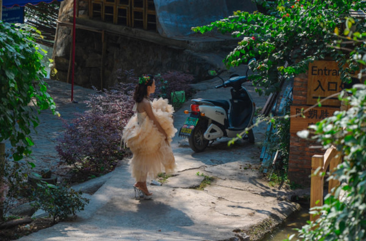 路上看到的新娘子在拍婚纱照