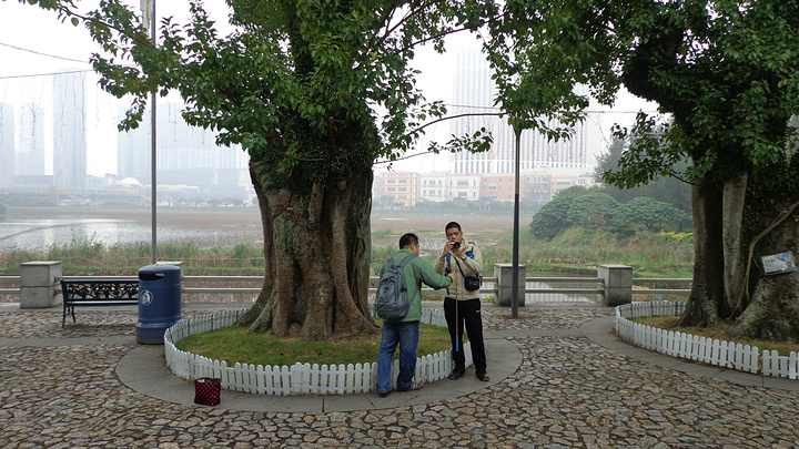 果然大树不太靠谱,倾斜了一小角。没办法,又无法和旁边的菲律宾保安沟通。只好将就着吧,好歹也全数人进镜头了~~~~~~