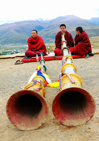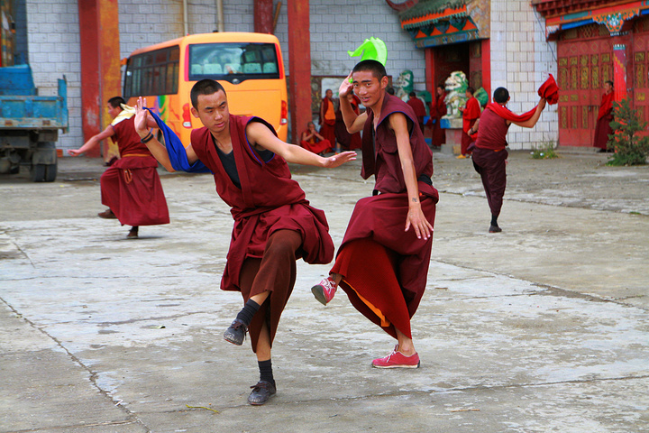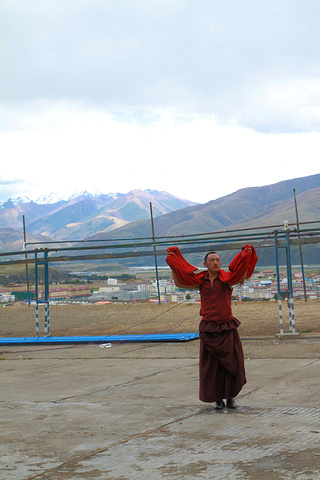 小面包车在暮色中晃晃悠悠进了甘孜城。在我印象中,甘孜是317过道上为数不多的大城市,战略地位跟铁岭有的一比。自古以来甘孜城就是通往康川藏区的枢纽,比起康区的其他县城来说规模大了不少。我们先去了网上传的特别好的川王府看看住宿咋样,然后我指着房间里摇摇欲坠的床头柜批评了店主5分钟。尼玛太脏了。脏也就罢了,卖我100一个晚上就有点不对了。后来该店主主动承认了错误,把我们带到了自己的另一处物业,我们看了看虽然所有的房间门都开在露天的楼道里,但是看在都是铁皮的防盗门的面子上勉强住了进去。还不错,卫生间跟卧室是一比一的比率,超级酷。 甘孜不愧是康藏枢纽,县城的规模比其它317线上的县城规模要大很多,街市也很繁华,商铺众多,有点高原小成都的感觉,虽然下雨,但是人来人往的丝毫不显得冷静。我去客车站找车明天去亚青寺再到白玉,被众多司机团团包围,七嘴八舌的跟我讲价,但是讲来讲去就一个价格,一毛钱不让。我假装愤怒的把无关人员全部推开,就只问我最初搭话的那个小伙子,但是不多久那帮厮又继续围拢过来继续哄抬物价。最后我败了。我发现他们很多人不在乎有没有生意,但是很在意有没有乐子,起哄的劲头比做生意的劲头大多了,而且你不妥协这事就没完,反正他们有的是时间跟你耗,在他们看来,也许人生最大的乐趣不是赚了多少钱,而是这一天找了多少乐子。 因为第二天要赶往白玉,所以我们趁着天色未黑急急忙忙的去了趟甘孜寺。 天有些阴,下着毛毛雨,甘孜寺昂然挺立在县城的最高处,宛若一双眼睛俯瞰着甘孜大地。 我门进去后被管家无情的收了10块钱门票。阿米和小李不辞辛苦智取华山一般从山下爬进了寺庙,免费。
