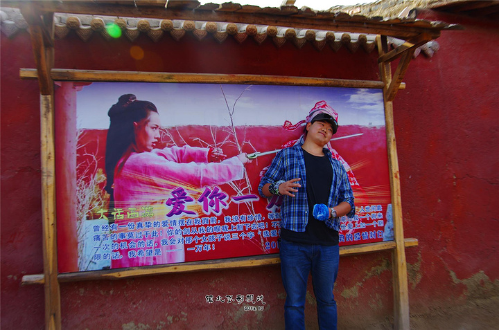 【镇北堡影视城的演员梦,人生如戏,全靠演技】 走进来是游客,走出去是明星。在镇北堡影视城,我们沿着数百部影视作品明星们走过的星光大道,在各个角落回味电影中那些津津乐道的场景、道具与台词,重温经典,也顺带圆了我们一把明星梦。真是人生如戏,全靠演技。 走进《大话西游》的城堡,我依稀记得那段词:“当时那把剑离我的喉咙只有0.01公分,但是四分之一炷香之后,那把剑的女主人将会彻底地爱上我,因为我决定说一个谎话。虽然本人生平说了无数的谎话,但是这一个我认为是最完美的……曾经有一份真诚的爱情放在我面前,我没有珍惜,等我失去的时候我才后悔莫及。人世间最痛苦的事莫过于此。如果上天能够给我一个再来一次的机会,我会对那个女孩子说三个字:我爱你。如果非要在这份爱上加个期限,我希望是……一万年!”呵,爱你一万年,是多么纯粹的美好夙愿。