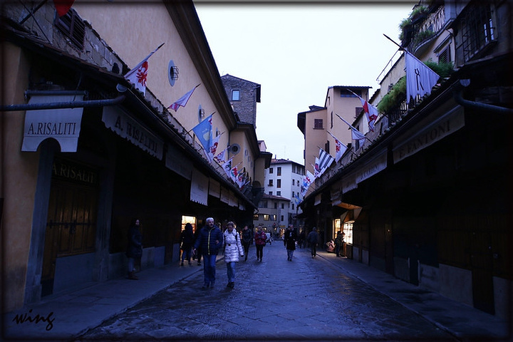 前一天经过这里的时候因为有旅行团,老桥上挤得水泄不通。这天再来这里没有了旅行团的喧闹,走在清静的老桥上,感受在佛罗伦萨最后的浪漫。