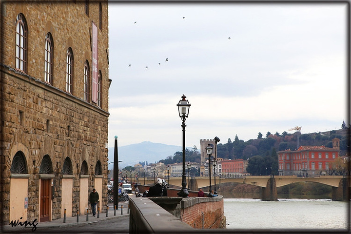 ——佛罗伦萨,舍不得再见 在乌菲兹美术馆泡了几个小时,才依依不舍走了出来。乌菲兹美术馆就在阿诺河边上,来到河边就可以看到老桥,沿着河边走去老桥。